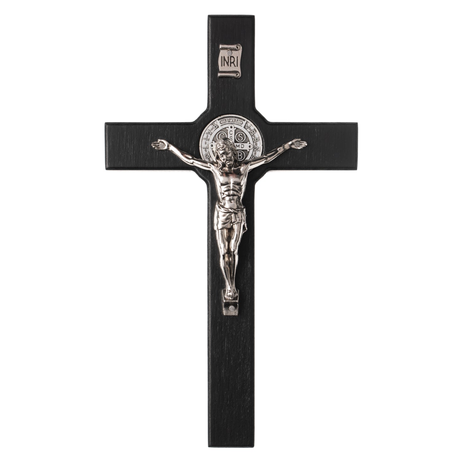 Croix de St Benoît en bois suspendue avec pasque noir 18x10x1.8cm