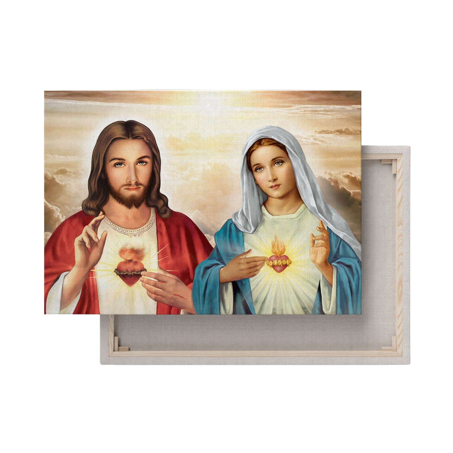 Peinture sur toile Cœur de Jésus Cœur de Marie 60x90 cm