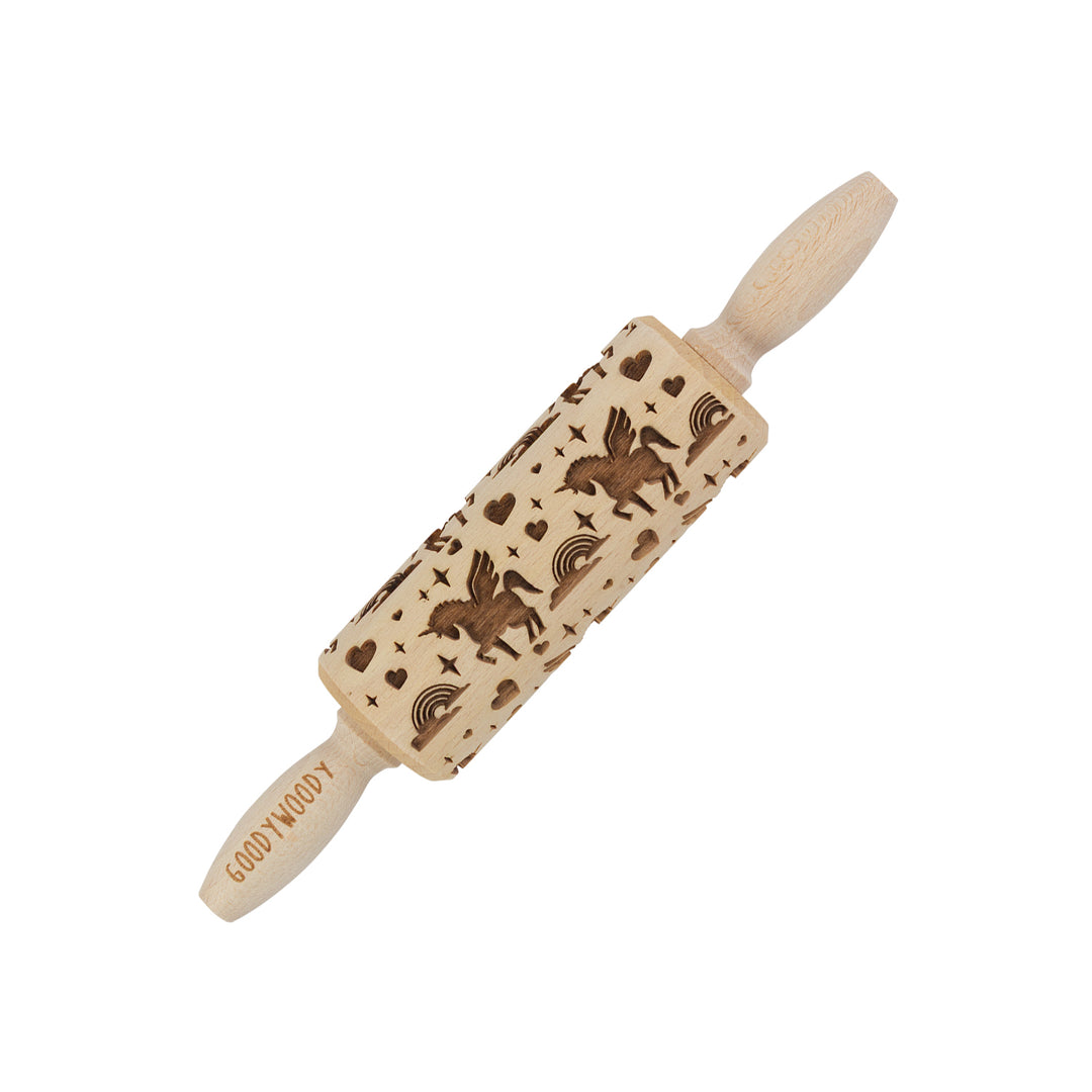 Rouleau à gâteau gravé Goody Woody, 23,5 cm, bois de hêtre, motif licorne