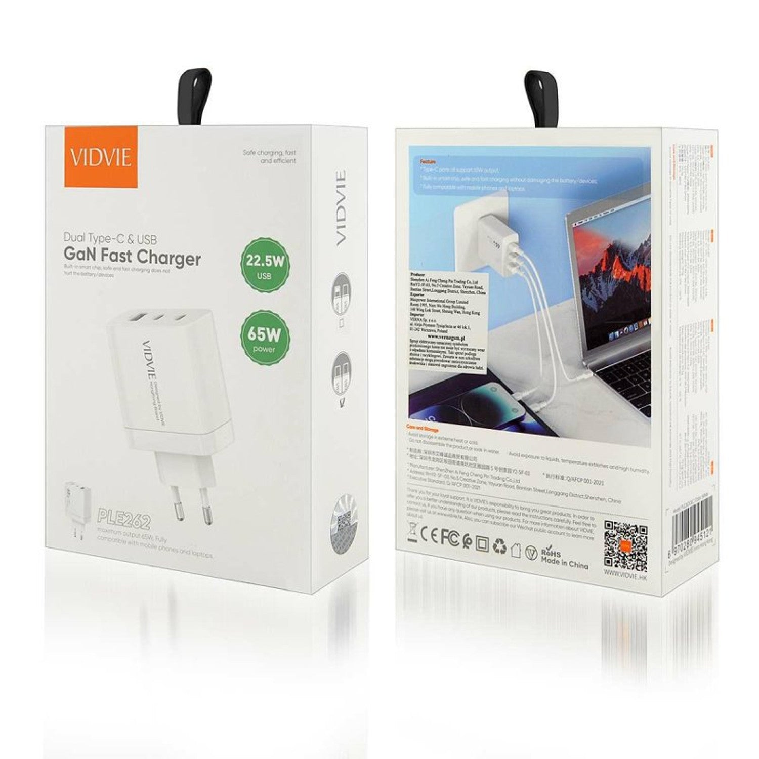 Chargeur rapide VIDVIE 3A 65W USB-C