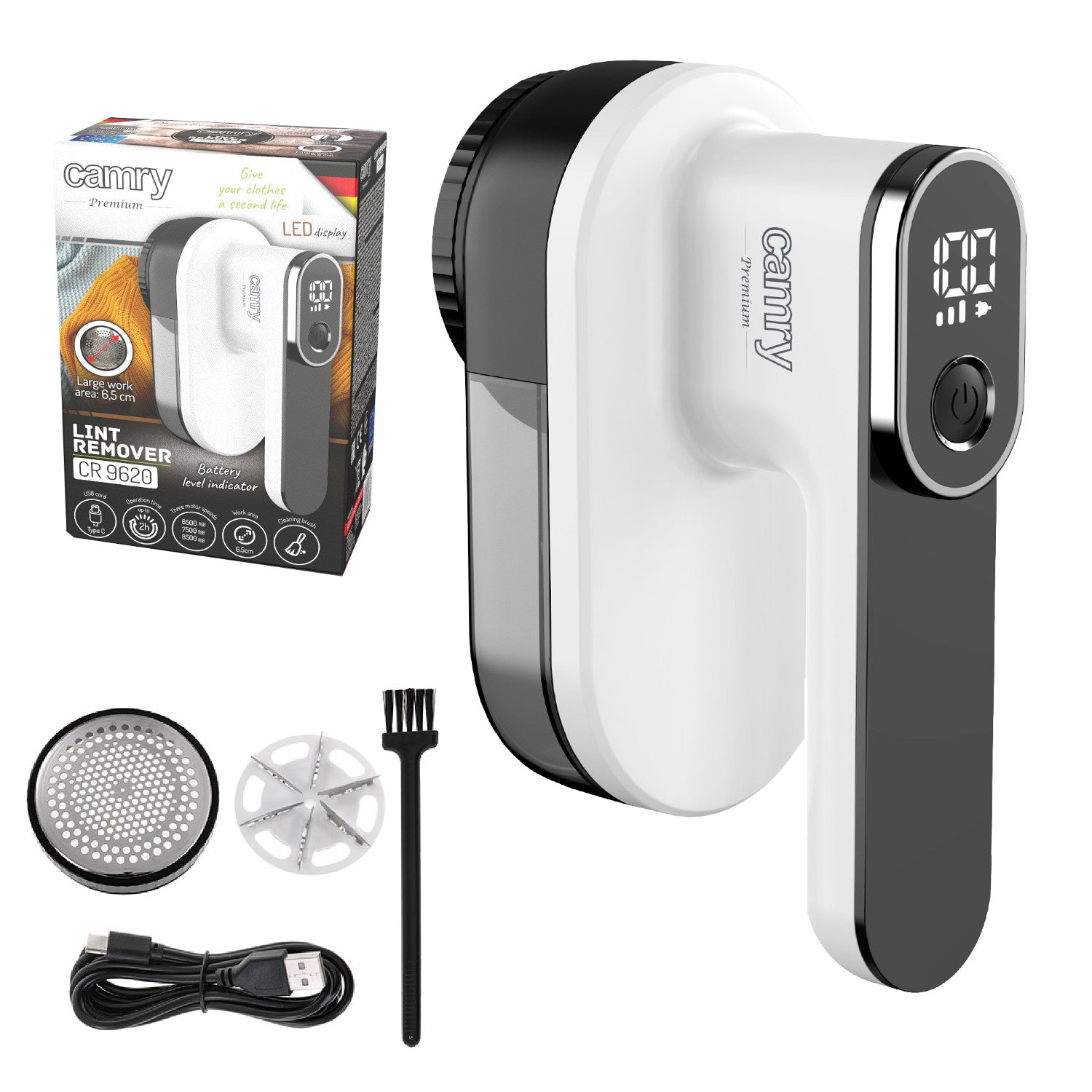 Le Camry CR 9620 est un rasoir de pointe conçu pour renouveler vos vêtements en éliminant efficacement les perles et les plis. Grâce à ses fonctions avancées, dont un écran LCD permettant de contrôler en temps réel le niveau de la batterie et plusieurs réglages de vitesse, cet appareil garantit que vos tissus auront l'air neuf avec un minimum d'effort. L'écran LCD vous permet de contrôler entièrement l'appareil. Le rasoir est équipé de trois vitesses : 6500, 7500, 8500 tr/min et est équipé d'une puissante batterie au lithium de 3,7V, 2000mAh.