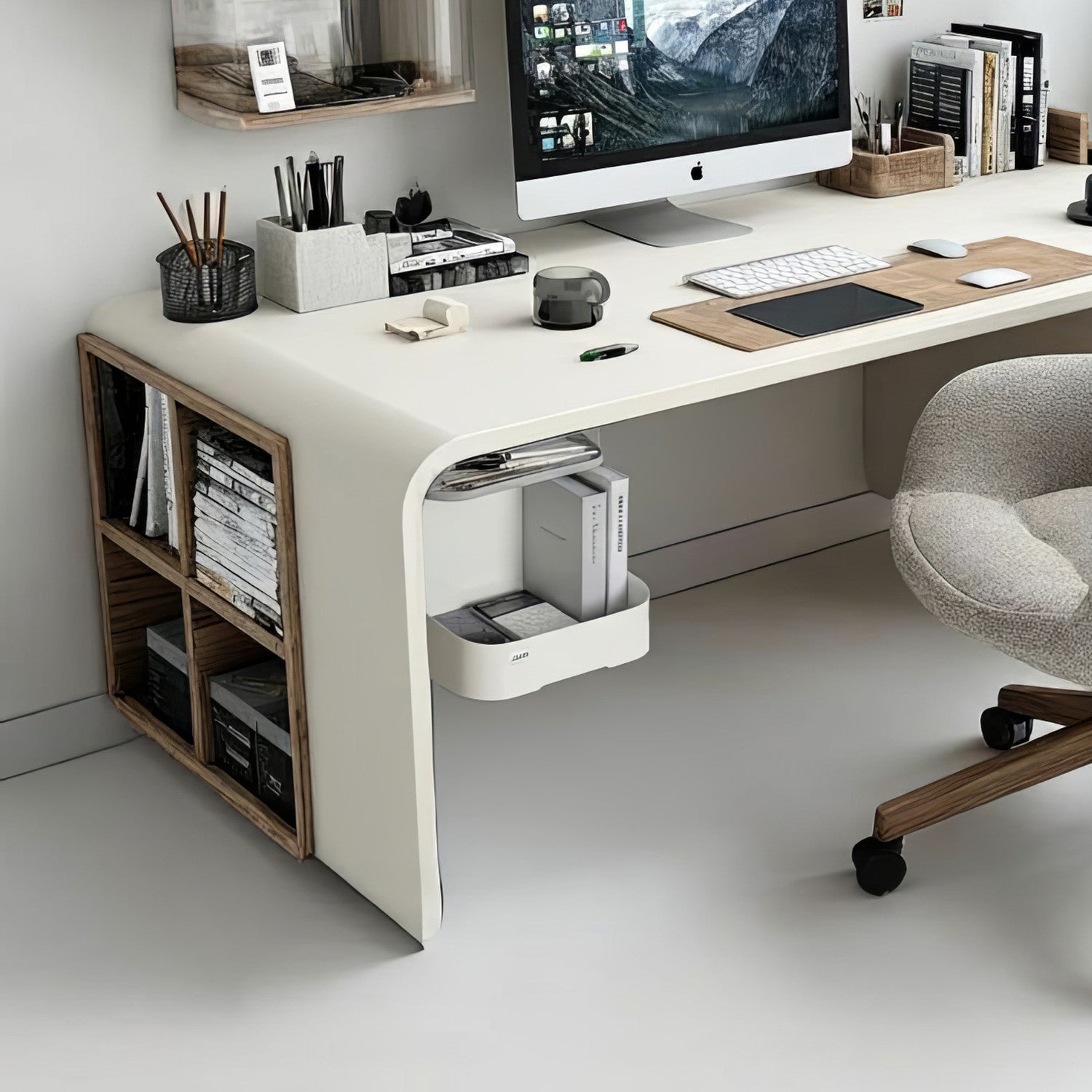 Organiseur de bureau de haute qualité, compact et spacieux, à monter sous le bureau. Grâce à ses nombreuses utilisations, l'organisateur peut être utilisé aussi bien à la maison qu'au bureau ou à l'école. La surface de l'étagère inférieure est recouverte de feutre, ce qui évite les rayures. Grâce à son design moderne, l'organisateur s'intègre parfaitement à tout environnement.