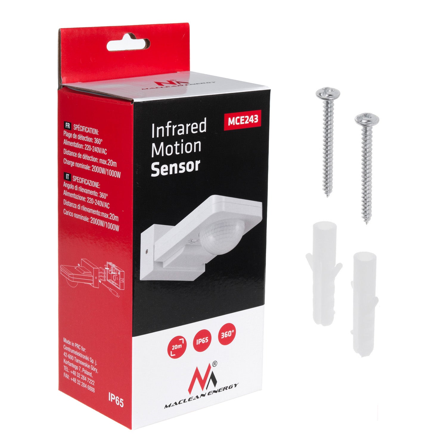- Détecteur de mouvement PIR Maclean MCE243 - 2 pièces