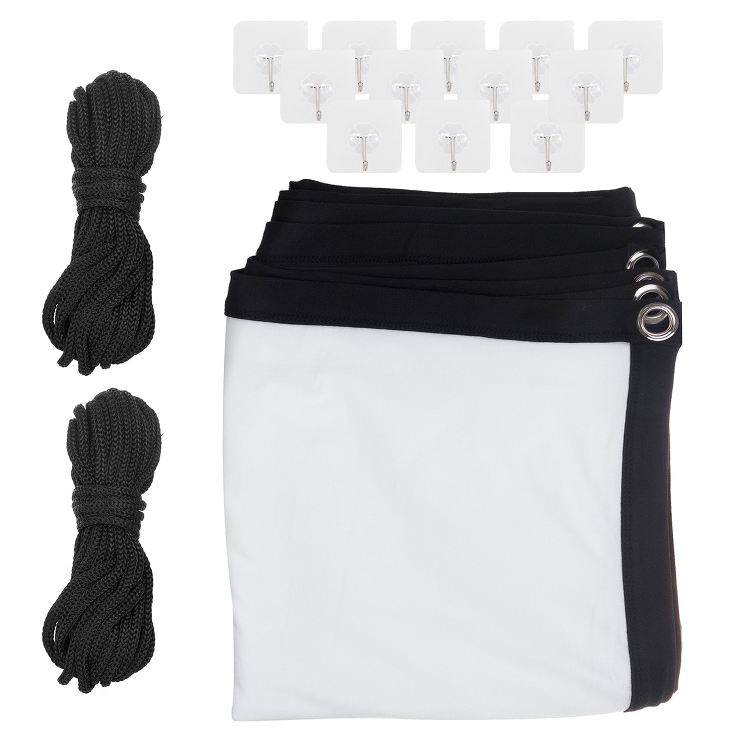 L'écran a été conçu pour une facilité d'utilisation maximale. L'installation est extrêmement simple et rapide - il suffit de suspendre l'écran aux crochets adhésifs inclus ou de le fixer à l'aide de câbles. Grâce à cette flexibilité d'installation, l'écran est idéal pour une utilisation à la maison, au bureau, dans une salle de conférence, à l'école ou même lors d'expositions en plein air.