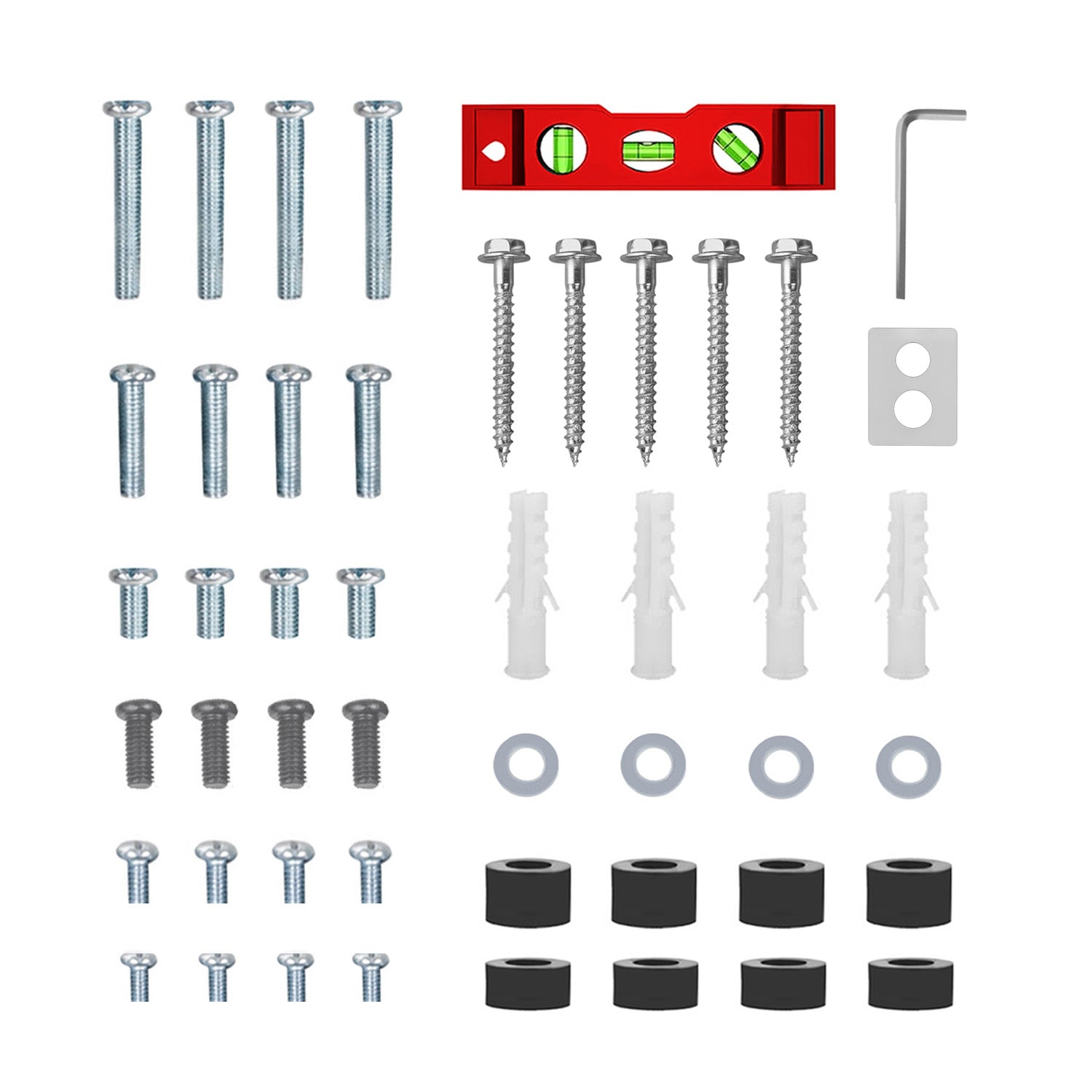 Le support est livré avec un niveau à bulle, qui facilite une installation précise, et un ensemble de vis de montage, ce qui rend l'installation simple et sans tracas.