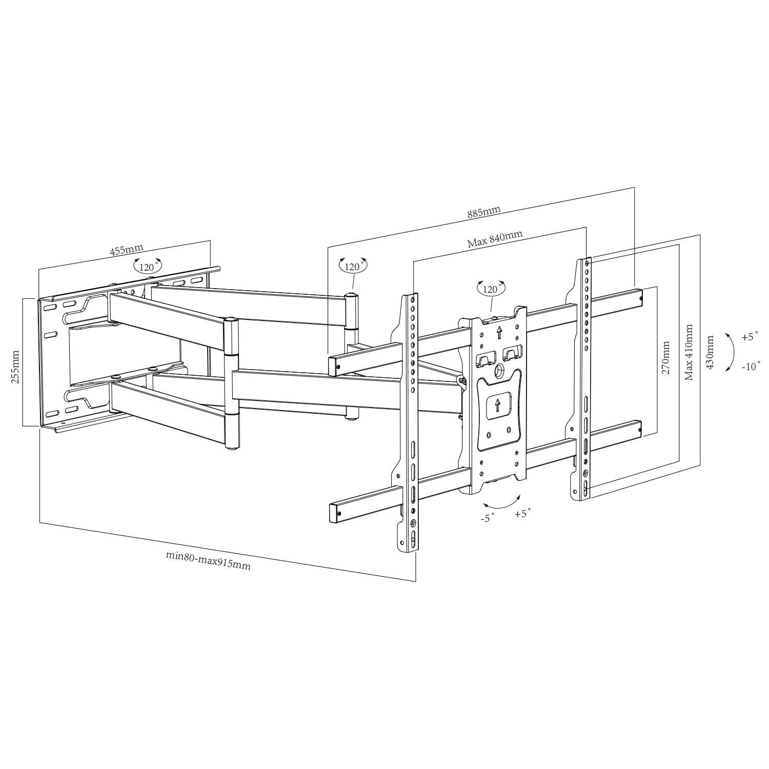 - Convient aux téléviseurs avec diagonale d'écran : 37" à 85"