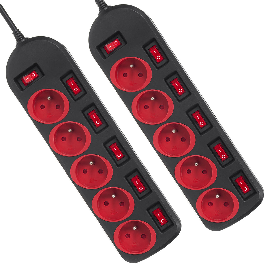 Multiprise Maclean, rallonge 5 prises, avec interrupteurs, 250VAC/10A, 1.5m, MCE204, 2 pièces