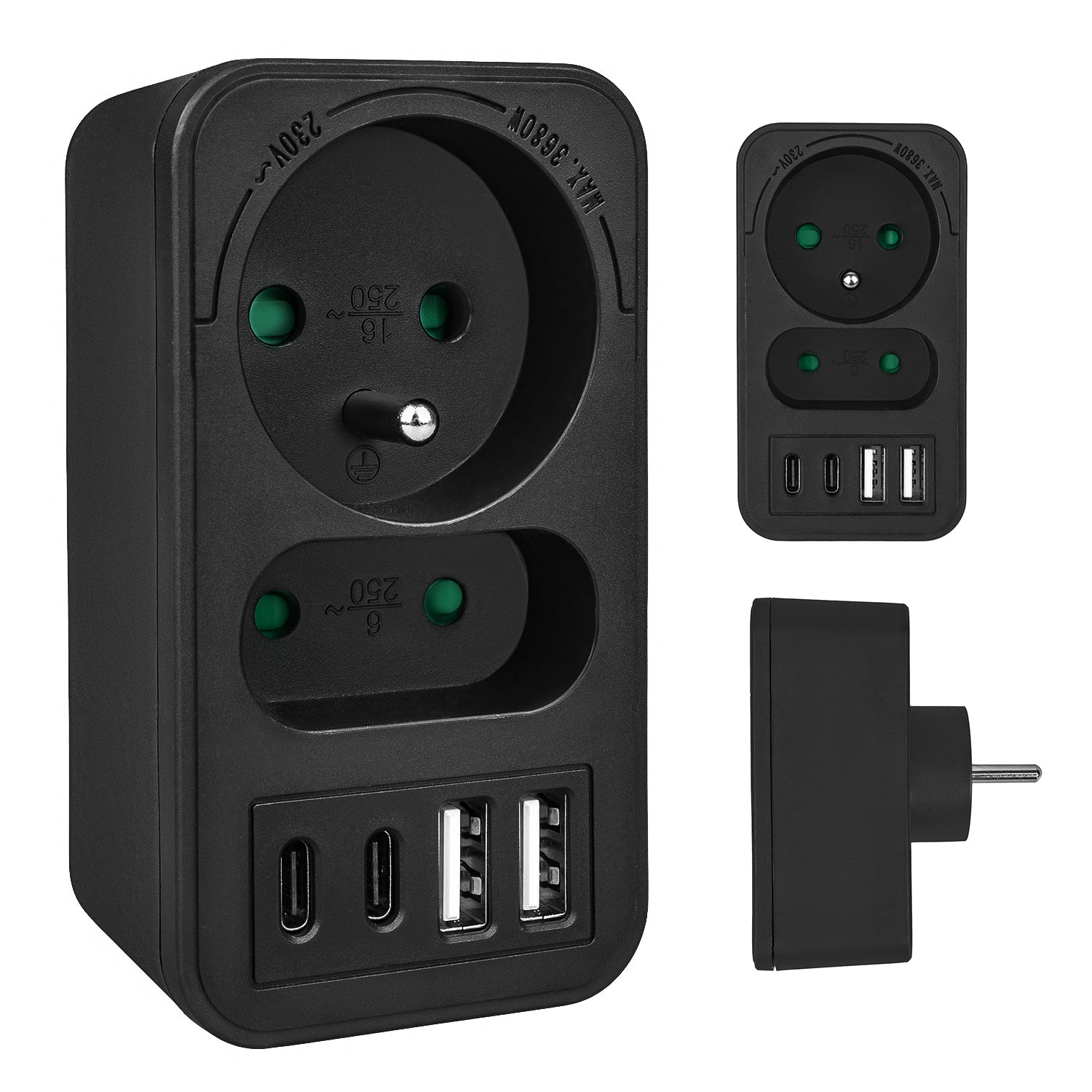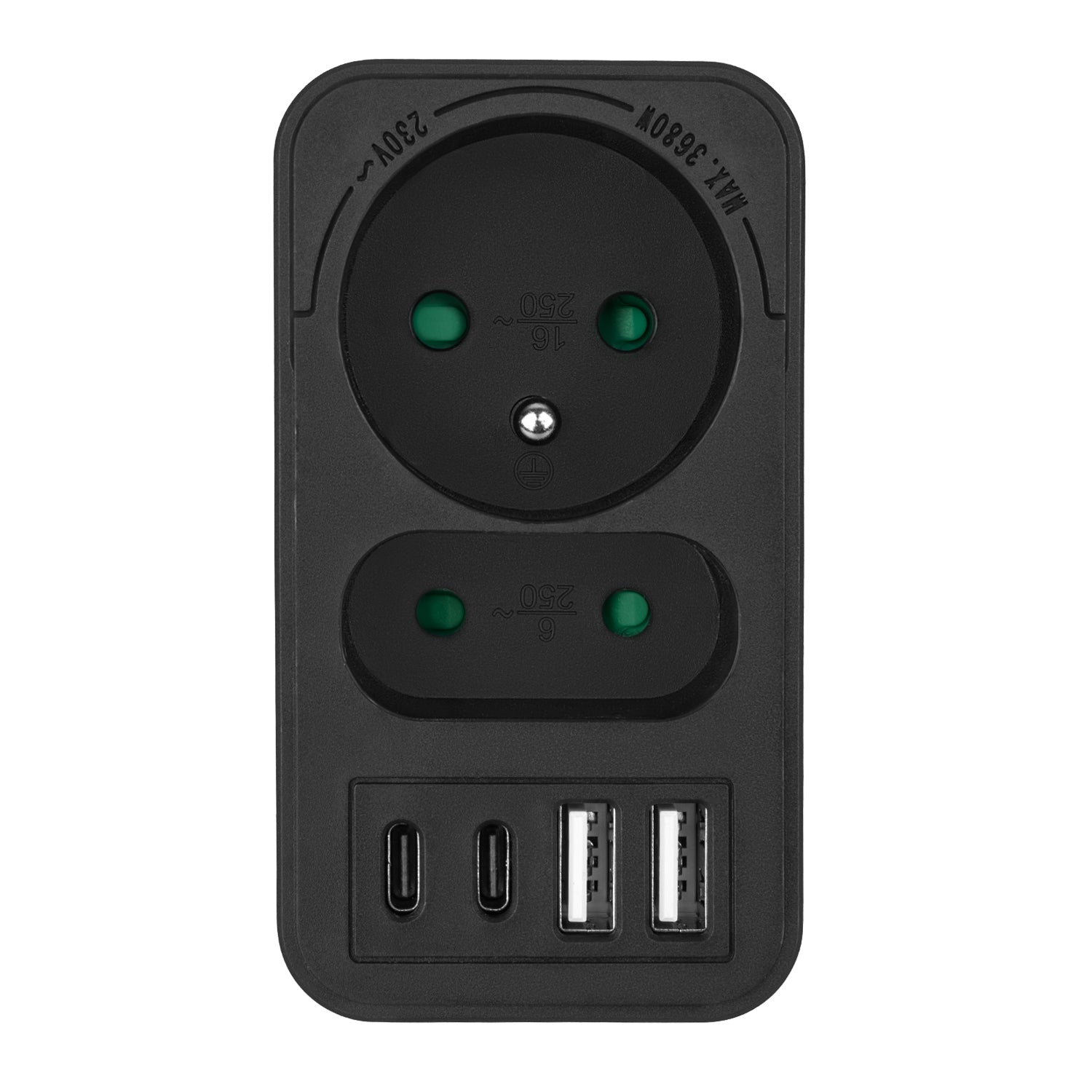 Répartiteur à 2 prises 2x USB-A 2x USB-C noir