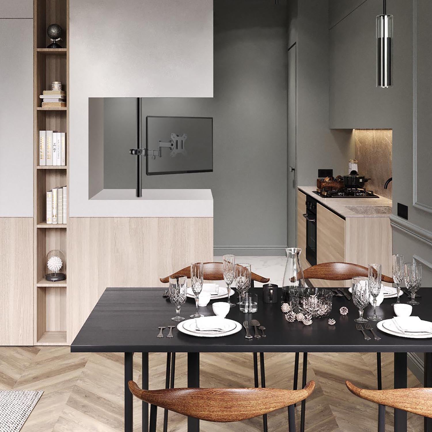 - Convient aux moniteurs de 17" à 32" (ou plus grands si leur poids ne dépasse pas 8 kg et si la norme VESA est compatible avec le support)