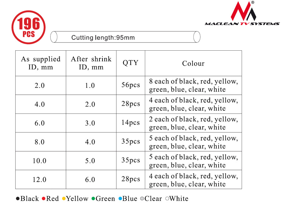 Tubes thermorétractables ensemble de 196 pièces câble 95 mm Maclean MCTV-679