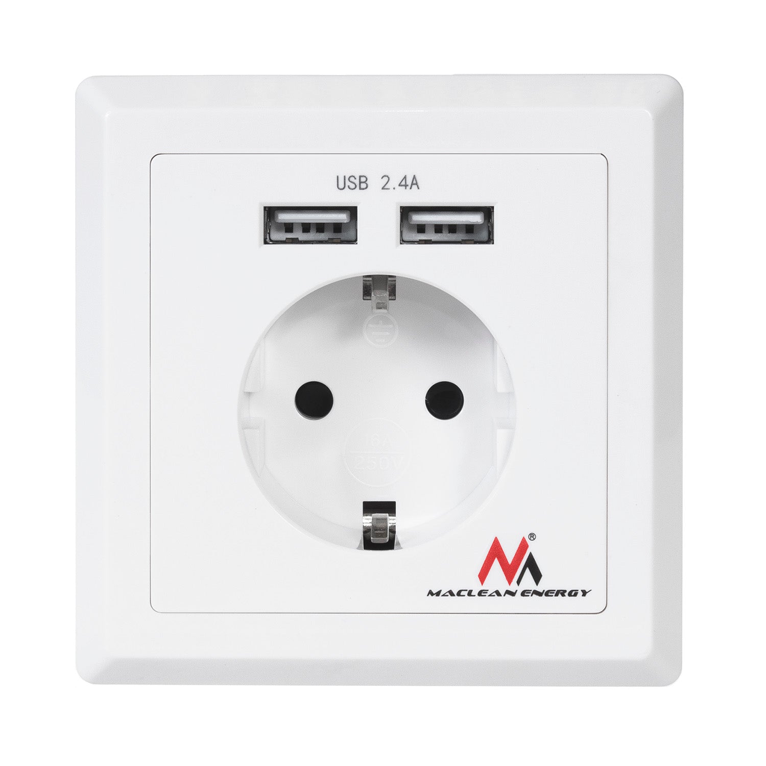 Prise de courant Schuko avec 2x USB 2.4A Maclean MCE237