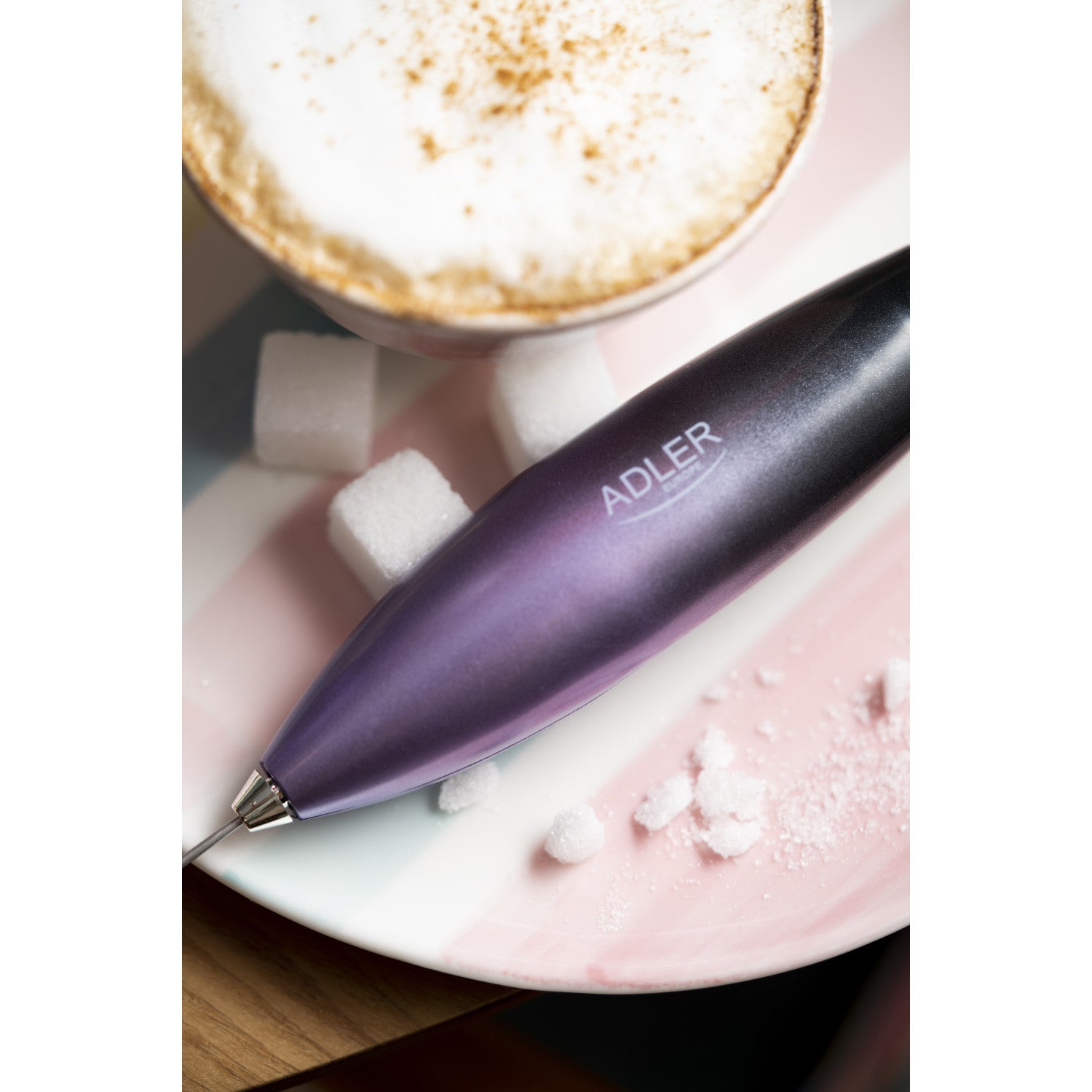 Adler AD 4499 Mousseur à lait avec support violet et noir