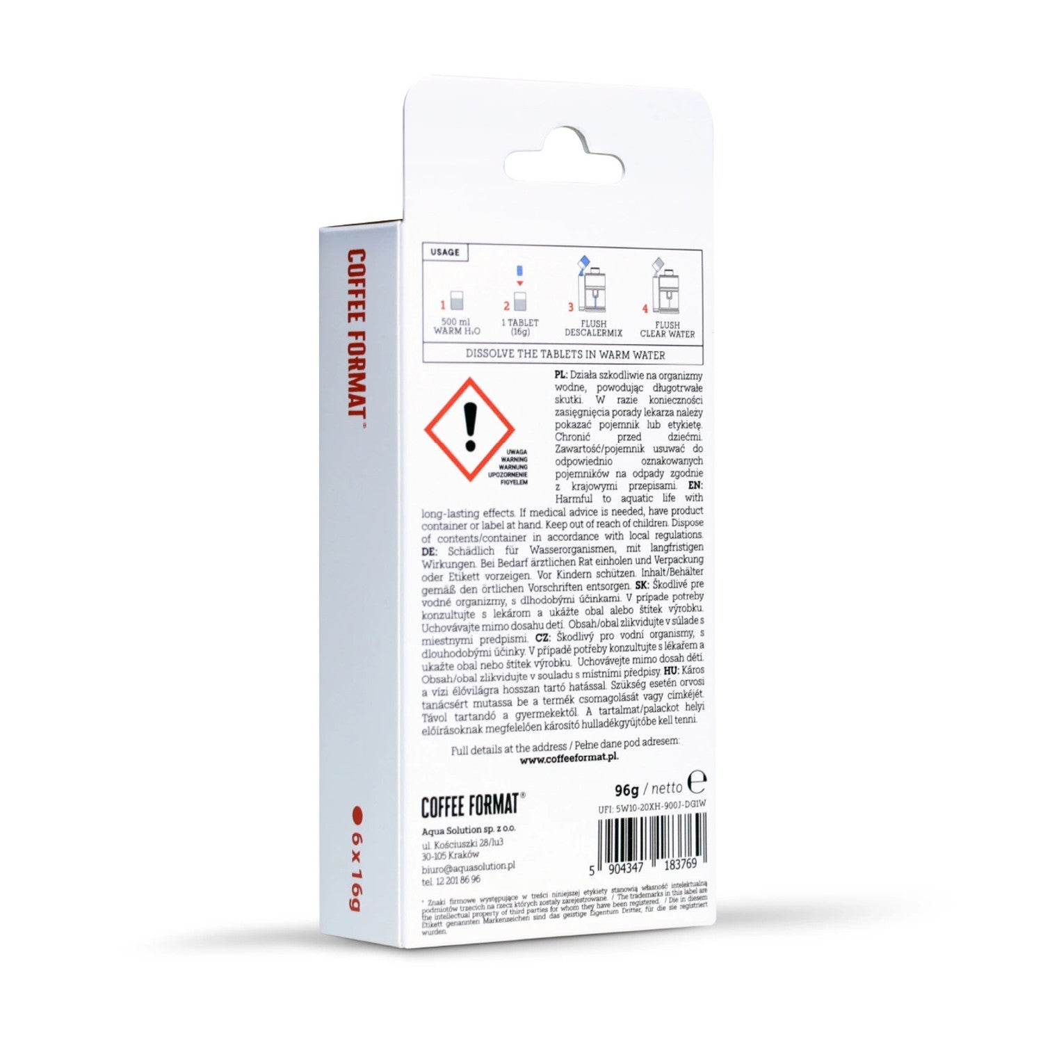 Comprimés pour détartrer les machines à café, Coffee Format Descaler Tab+ 6x16g
