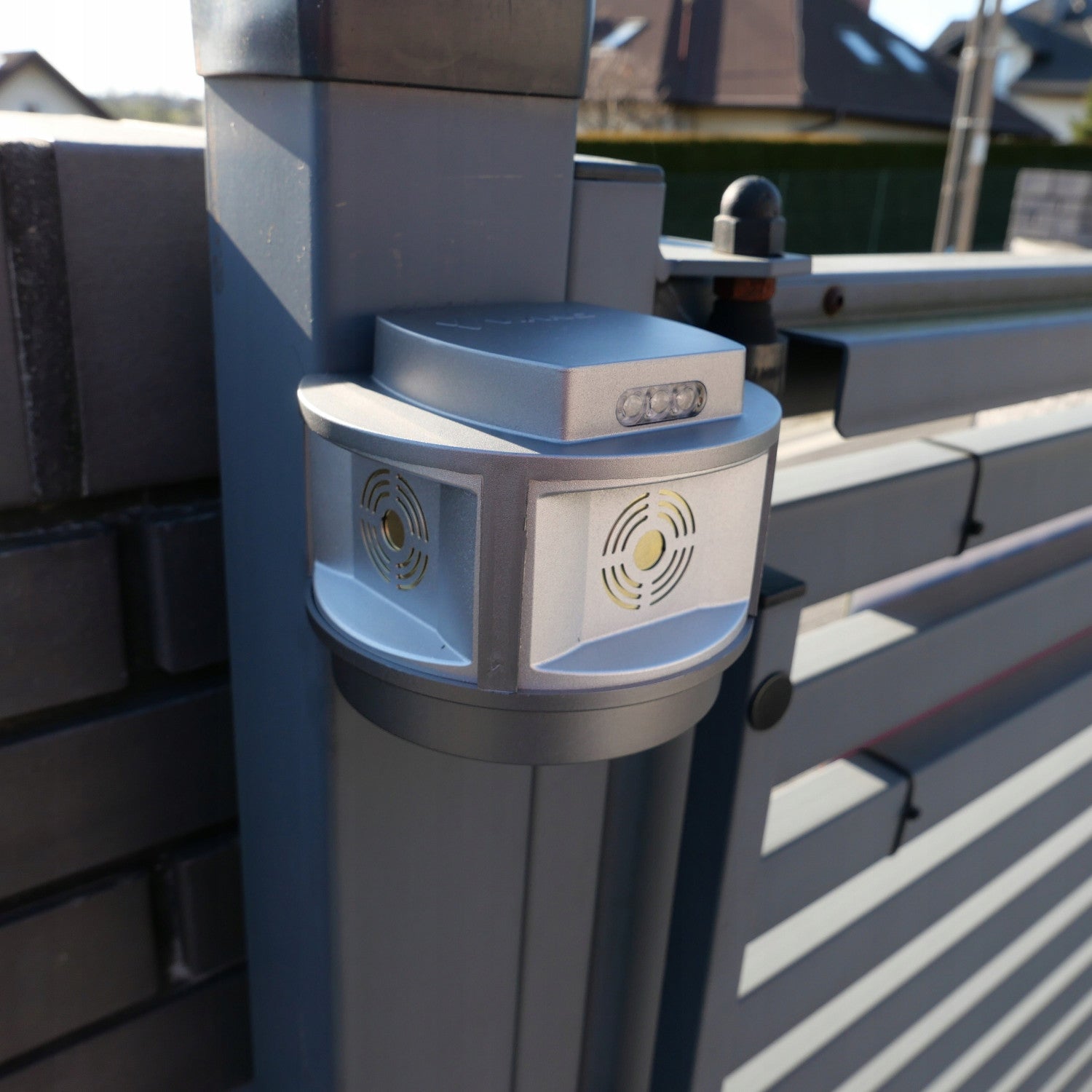 En outre, une plaque métallique avec des trous est incluse, qui peut être vissée sur n'importe quelle surface à l'aide des vis fournies et le répulsif peut alors y être fixé. De cette manière, l'appareil peut être fixé sur des panneaux de façade, des piliers en bois, des pergolas en bois, etc.