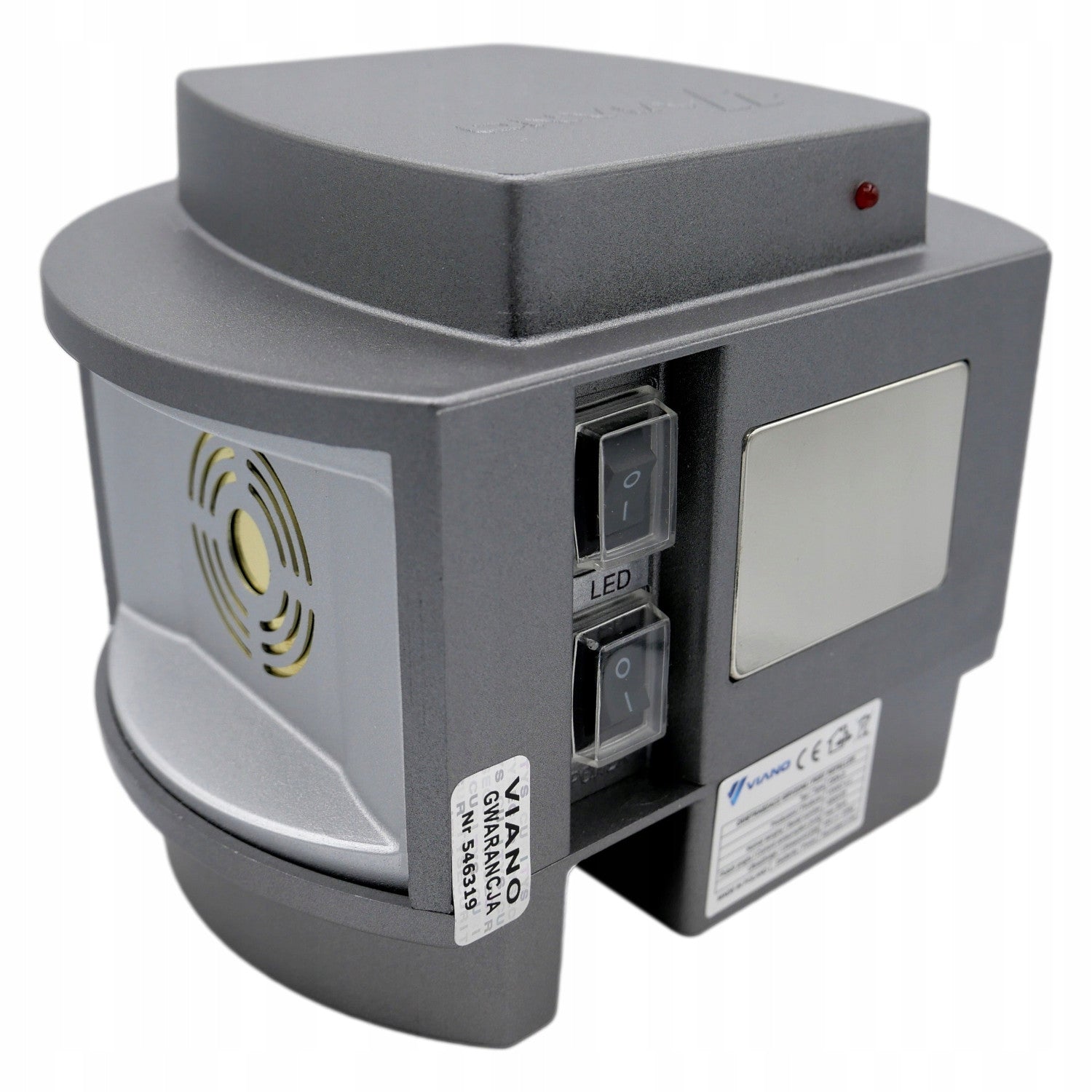 L'appareil peut fonctionner en mode d'émission uniquement d'ondes sonores et ultrasoniques, qui sont très gênantes pour les nuisibles. Ces ondes ont un effet négatif sur le système nerveux des nuisibles, ce qui les met mal à l'aise et les effraie, et les fait fuir de la zone protégée. L'appareil utilise de puissants haut-parleurs piézoélectriques en laiton, qui sont en outre protégés par une grille. Les haut-parleurs piézoélectriques en laiton se caractérisent par leur grande résistance à des facteurs tels que les basses et hautes températures et l'humidité. Les haut-parleurs ordinaires à membrane noire utilisés dans d'autres appareils sont structurellement susceptibles d'être endommagés et peuvent provoquer des courts-circuits dans l'installation. En outre, l'absence de grilles dans ce type d'équipement expose l'équipement à des dommages mécaniques accidentels.