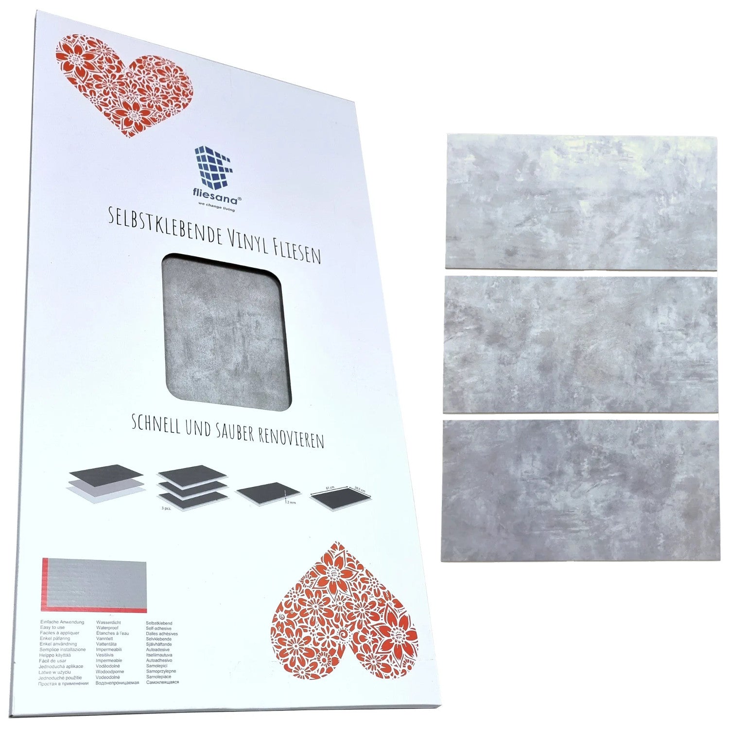 Fliesana carreaux de sol et de mur autocollants, lot de 3, imperméables, motif béton gris clair