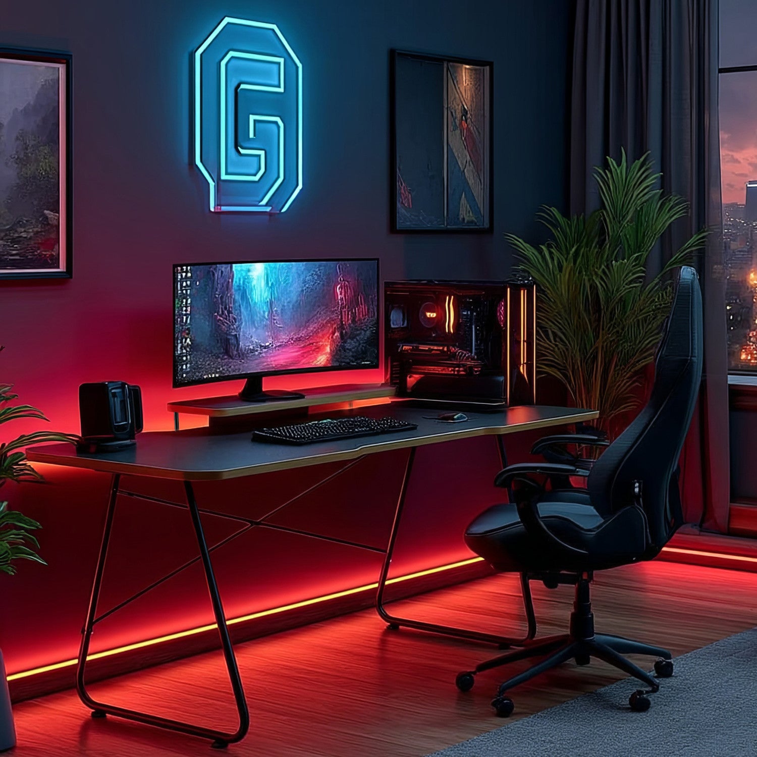 Bureau de jeu avec étagère pour moniteur