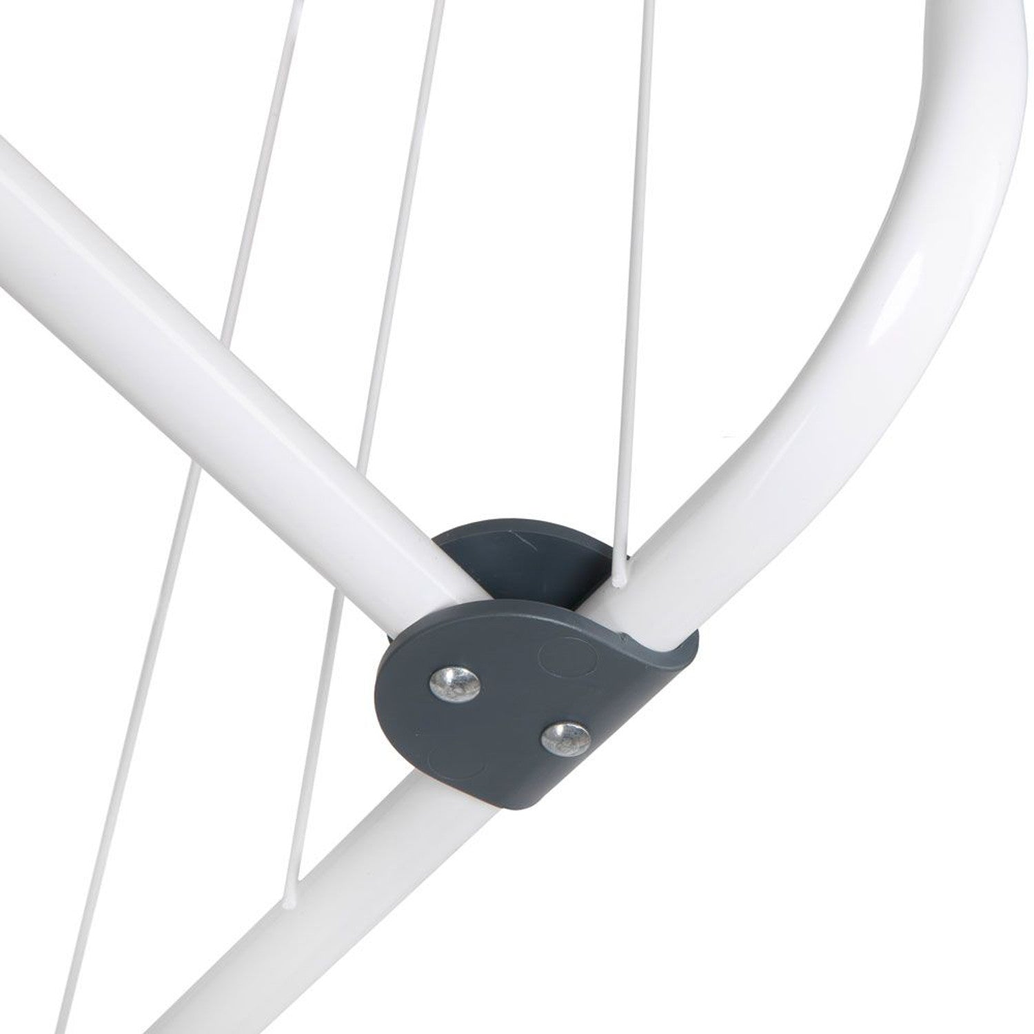 Le séchoir est fabriqué en acier de haute qualité, ce qui garantit une stabilité exceptionnelle et une résistance aux dommages mécaniques, aux rayons UV et aux intempéries. Les patins antidérapants augmentent la sécurité d'utilisation et protègent le sol des rayures. Le mécanisme de dépliage simple et le mécanisme de verrouillage contre le pliage accidentel rendent le séchoir intuitif et confortable à utiliser, même lors d'une utilisation quotidienne.