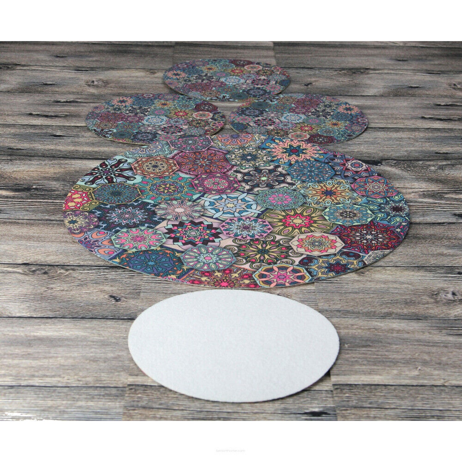 - Quatre sets de table d'un diamètre de 16 cm et un d'un diamètre de 33 cm