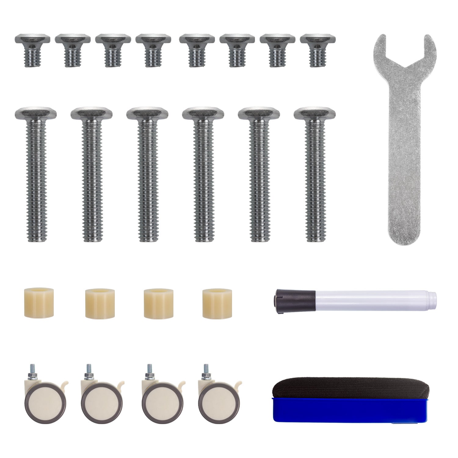 Le tableau blanc est équipé d'une étagère sur laquelle les petits accessoires, y compris le marqueur et l'éponge inclus, peuvent être commodément rangés. Ainsi, tous les éléments nécessaires sont toujours à portée de main, ce qui augmente le confort de travail.