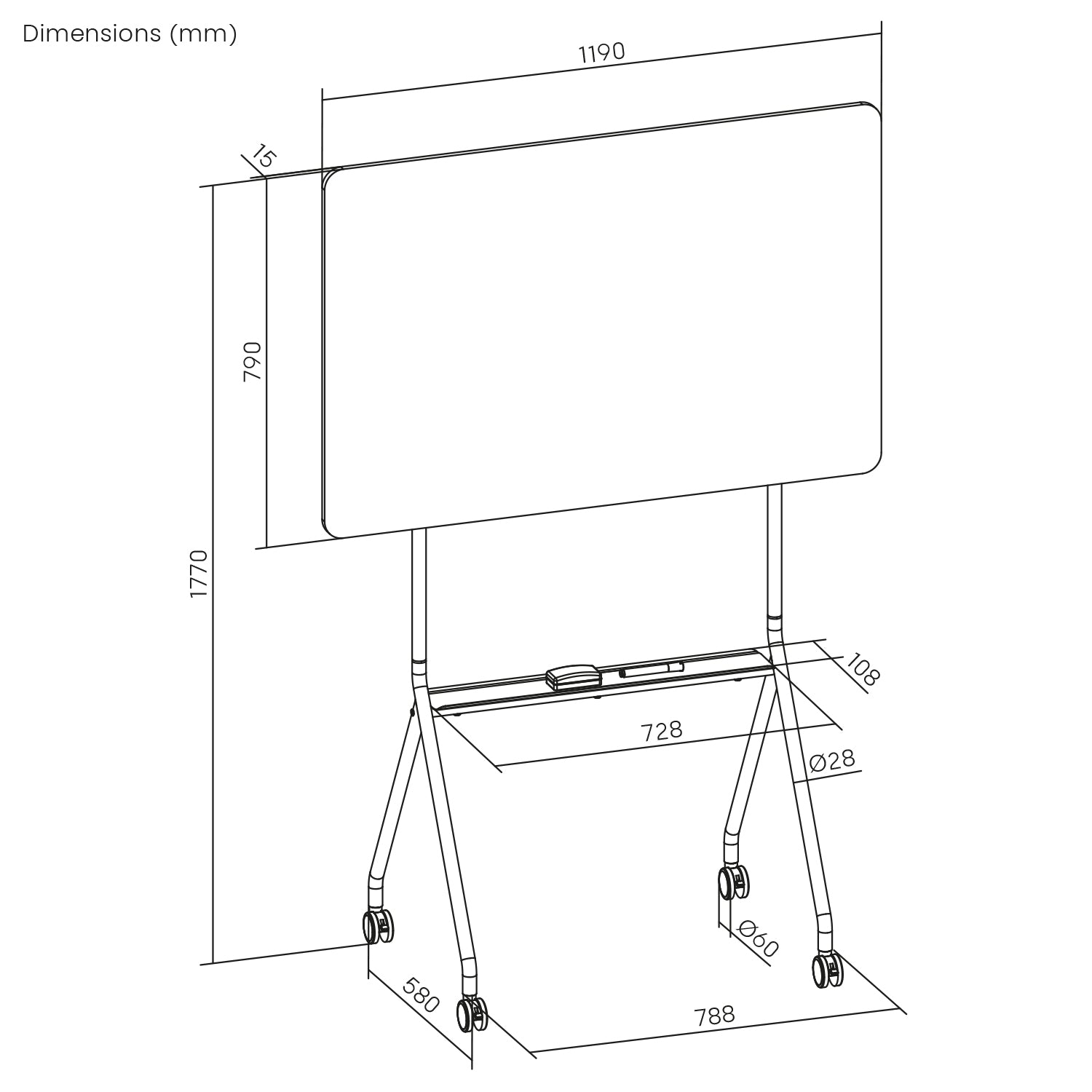 Tableau effaçable à sec horizontal mobile 119x79cm