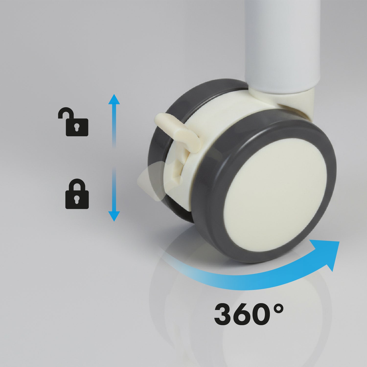 - Mobilité grâce à 4 roulettes verrouillables pour un déplacement facile et une utilisation stable.