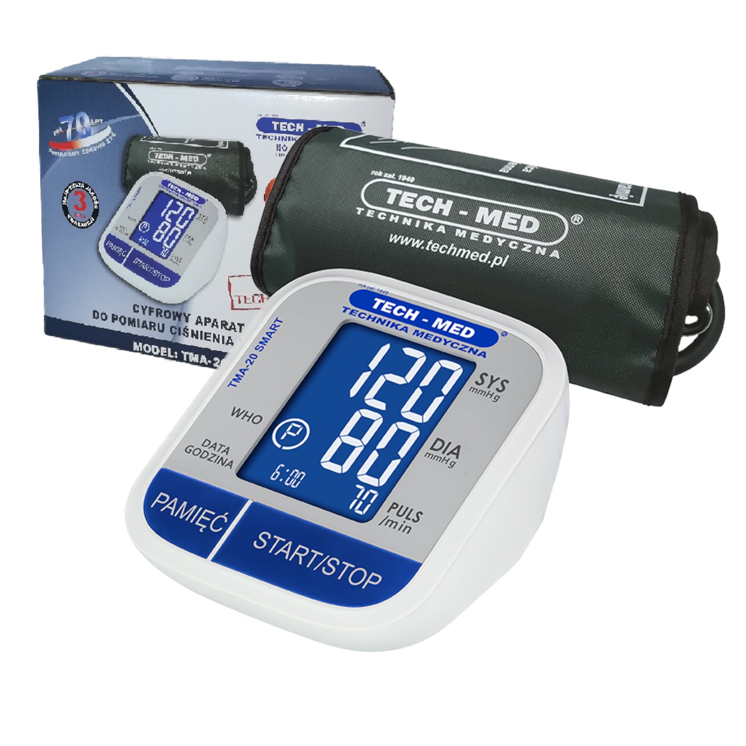 Le tensiomètre numérique TMA-20 SMART est un appareil moderne doté de la technologie avancée MWI (Measuring While Inflating). Le manomètre est caractérisé par une grande précision de mesure, qui est égale à celle de la méthode d'auscultation des manomètres mécaniques effectuée par un personnel médical qualifié. Cette précision a été cliniquement prouvée. La mesure de la pression artérielle est très facile, il suffit d'appuyer sur un seul bouton. Écran LCD ergonomique pour une lecture facile des résultats de mesure.