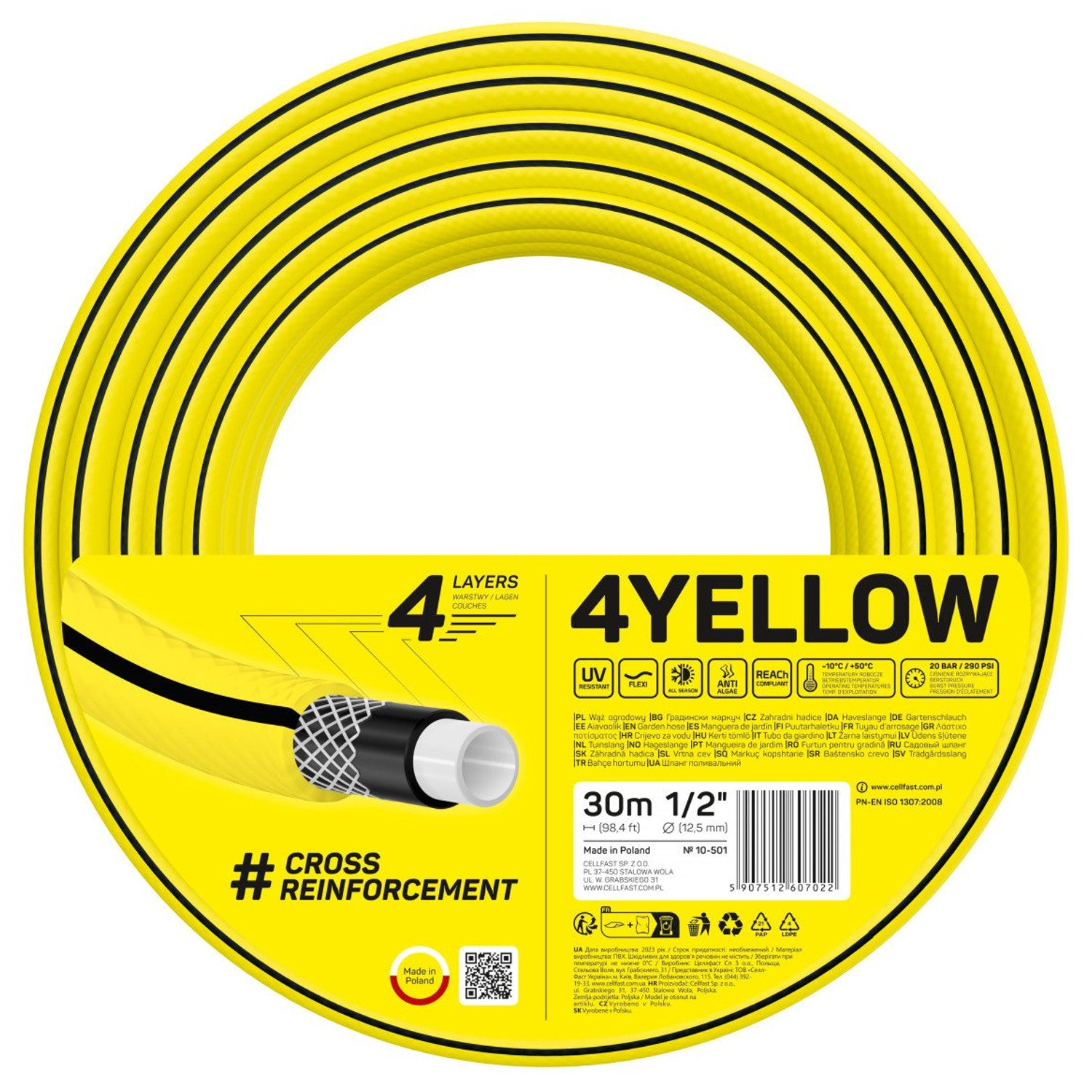 Tuyau d'arrosage CELLFAST 4YELLOW 10-501 1/2" 30m 4 plis